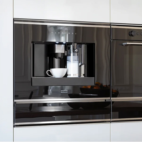 Mașina de cafea încorporabilă complet automată Franke FMY 45 CM XS din colecția Mythos este ideală pentru prepararea profesională a cafelei acasă. Prepară băuturi din cafea boabe sau măcinată, inclusiv espresso, cappuccino, latte și altele. Datorită recipientului pentru lapte și funcției de autocurățare, întreținerea este extrem de simplă. Designul modern combină sticla neagră cu oțelul inoxidabil. Controlul intuitiv și setările individuale pentru tărie, volum și temperatură permit savurarea cafelei perfect adaptate gustului tău.