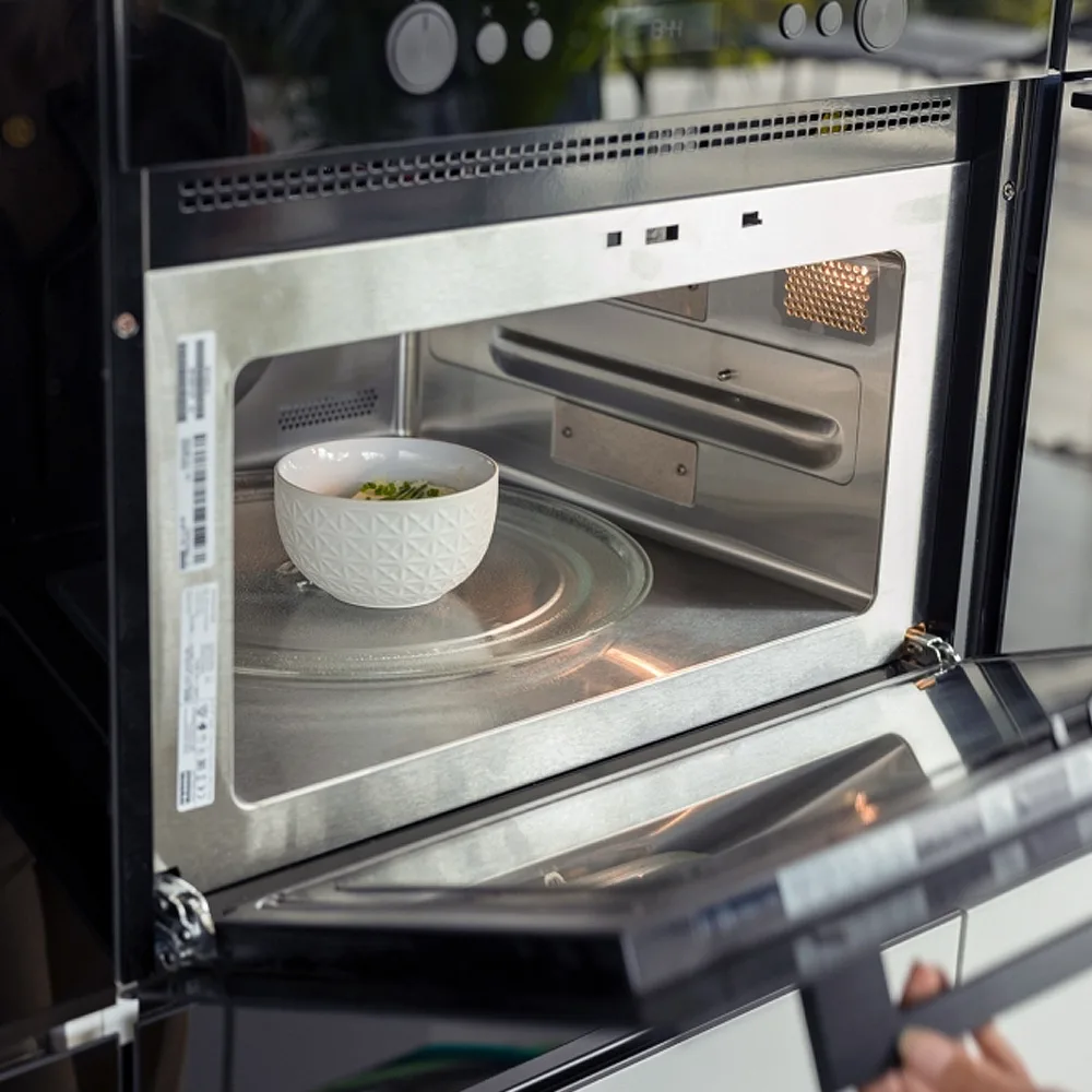 Modurile combinate (microunde + convecție sau grill) reduc timpul de gătire fără a compromite rezultatul. Funcțiile CookAssist oferă programe automate pentru diferite preparate.