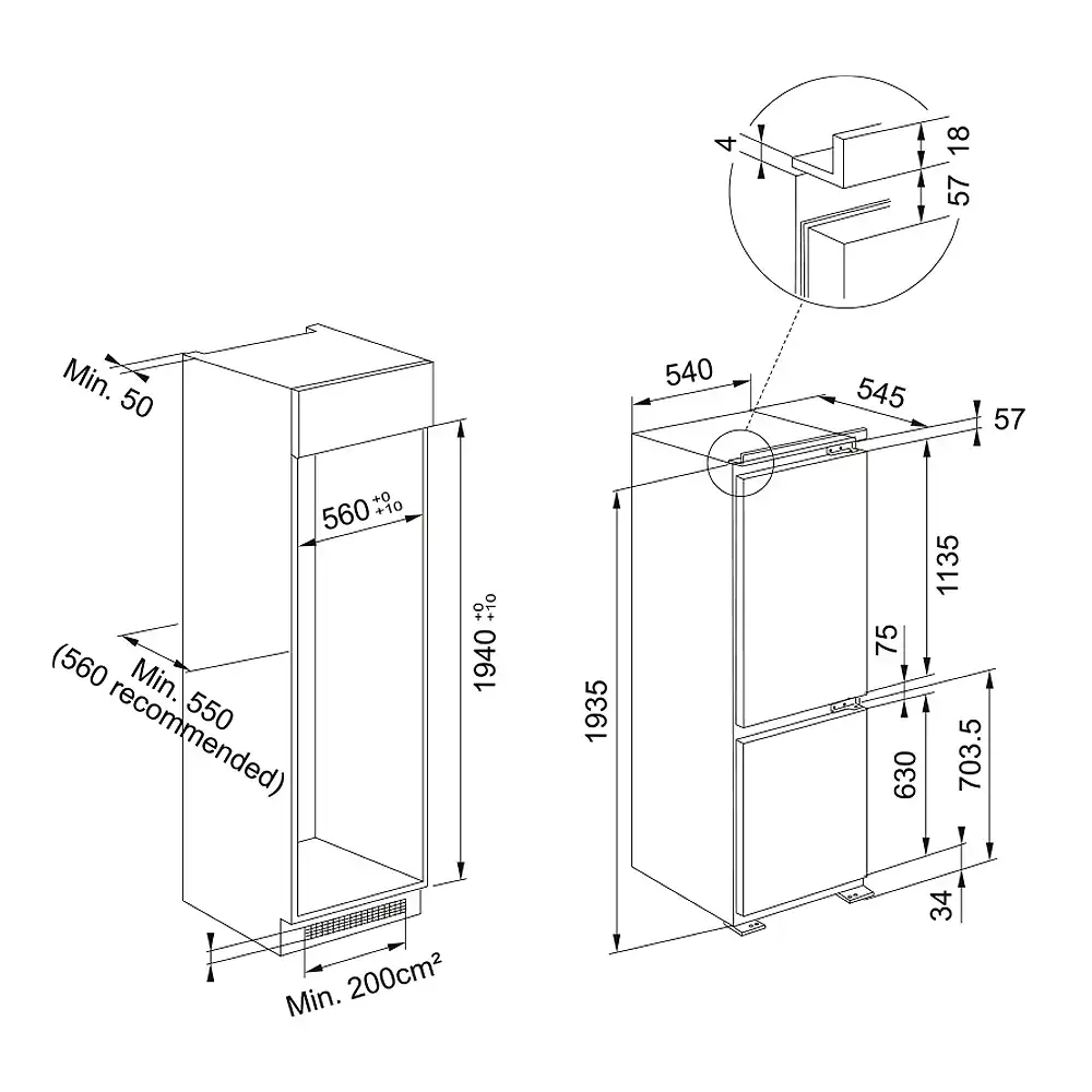 | Tip | Frigider încorporabil cu congelator jos |