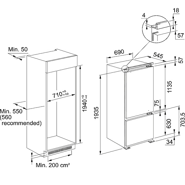 - Frigiderul FCB 400 TNF NE E este un model încorporabil cu tehnologie Total No Frost, care previne formarea gheții și asigură o răcire uniformă.