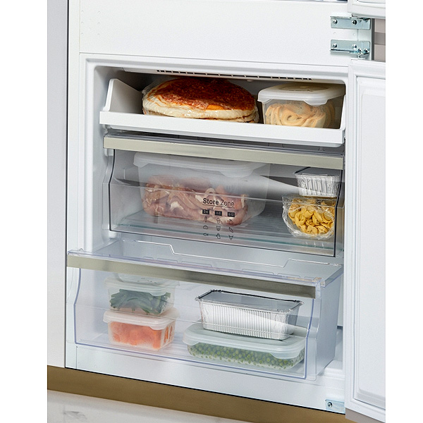 - Modelul este echipat cu o funcție de congelare rapidă, alarmă de ușă deschisă și sistem de control al umidității Fresh Zone.