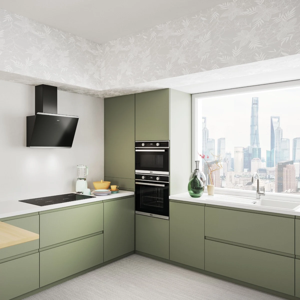 Controlul se realizează prin panou tactil, care permite selectarea rapidă și intuitivă a modului de funcționare. Hota dispune de 3 trepte de viteză, adaptând puterea de absorbție în funcție de necesitățile de gătit.