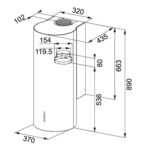 - Cu un diametru de 370 mm, performanță maximă de până la 700 m³/h și un nivel redus de zgomot, această hotă este ideală pentru bucătăriile moderne.
