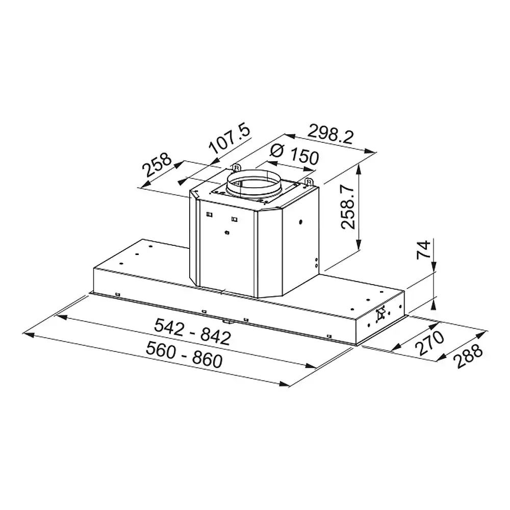 Hota de bucătărie Franke FMY 608 BI BK din colecția Mythos combină tehnologia modernă, performanța ridicată și designul elegant. Modelul este conceput pentru integrare completă în dulapul de bucătărie, păstrând un aspect minimalist și ordonat al spațiului.