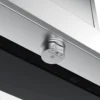 Carcasa este realizată din oțel inoxidabil combinat cu sticlă neagră, oferind un design elegant și modern potrivit pentru bucătăriile contemporane.