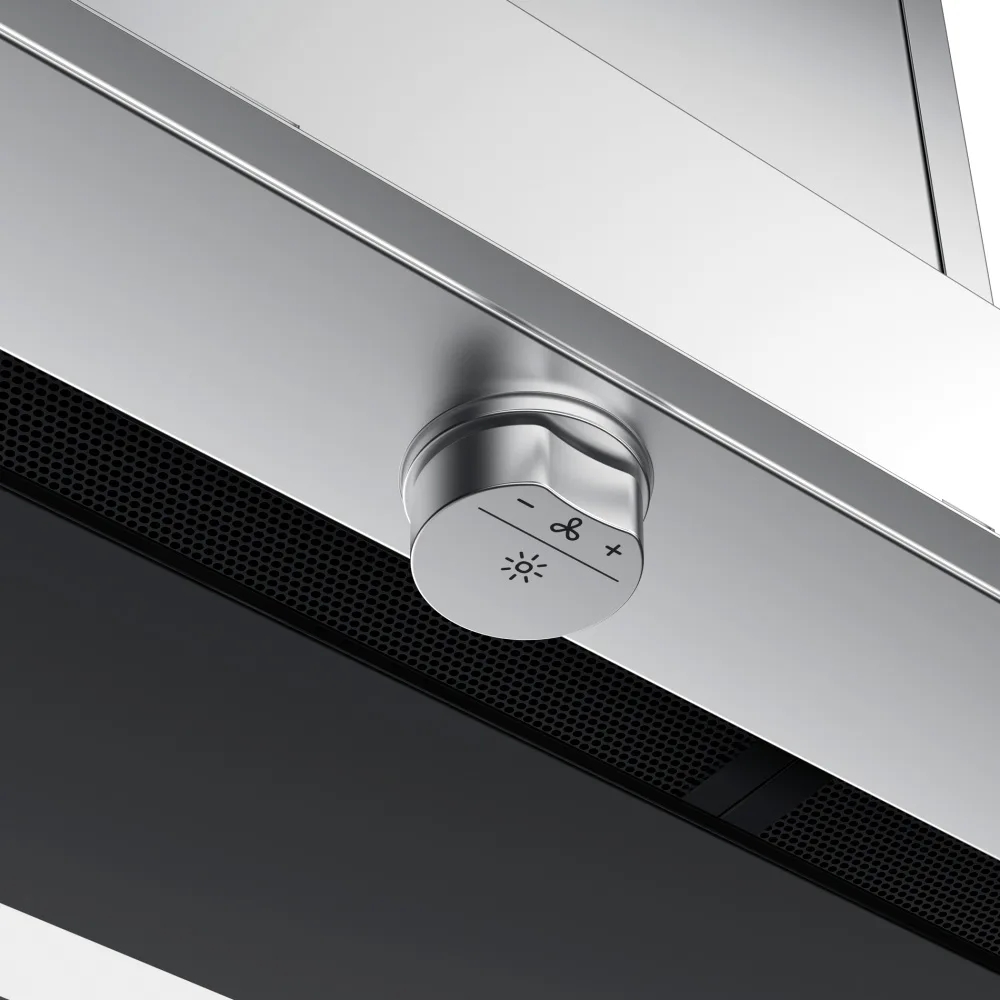 Controlul se realizează prin selector rotativ electronic, care permite reglarea rapidă a modurilor de funcționare. Hota dispune de 3 trepte de viteză și modul intensiv, pentru adaptarea puterii de absorbție la diferite situații de gătit.