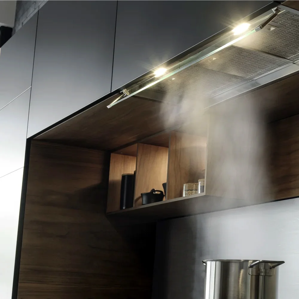 Hota este echipată cu motor de 230 W, care oferă o capacitate de absorbție de până la 660 m³/h în modul intensiv, iar debitul de aer în flux liber poate ajunge la 890 m³/h. Acest lucru permite eliminarea rapidă a aburului, mirosurilor și particulelor de grăsime din timpul gătitului.